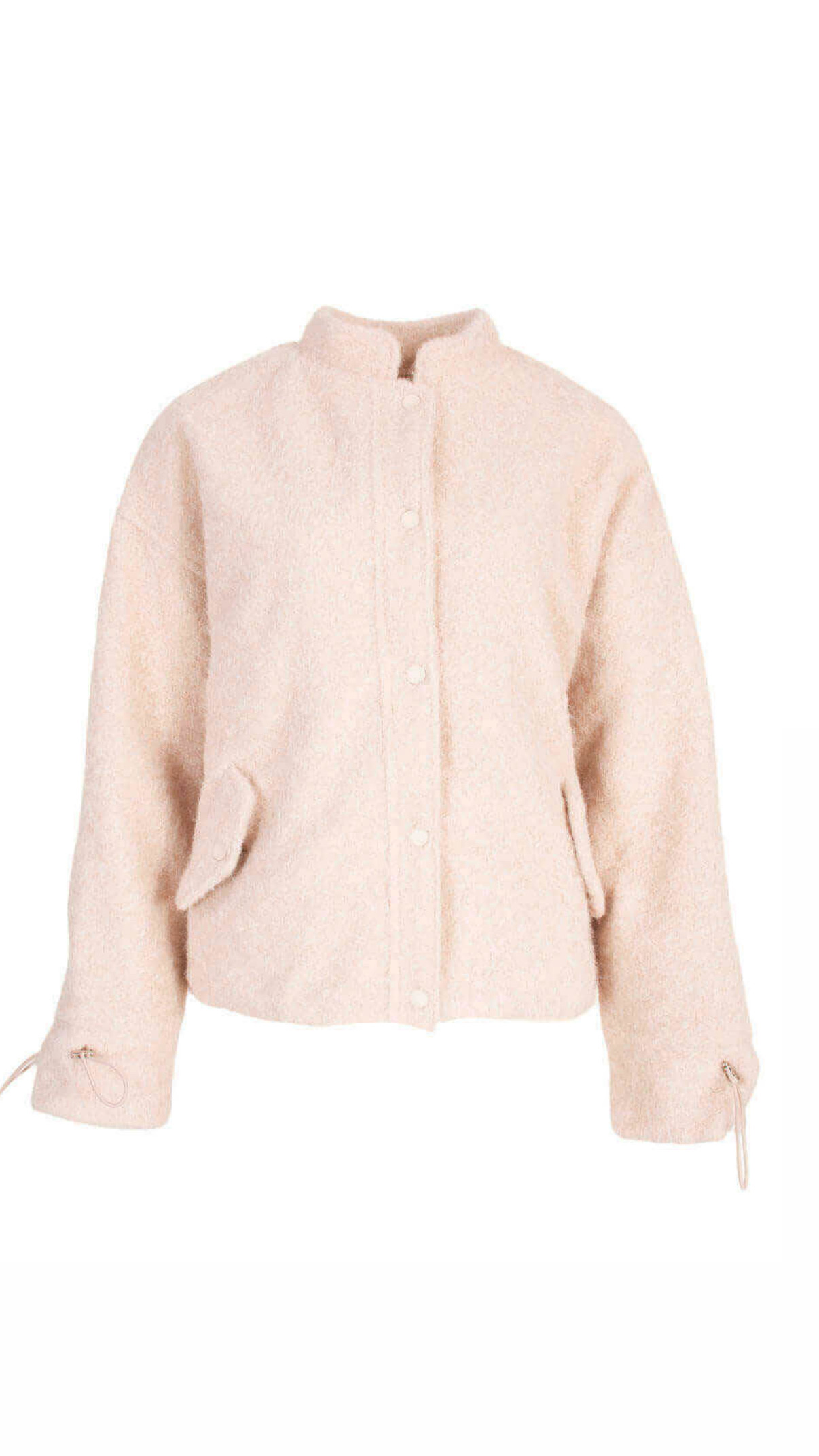 Dit jasje is gemaakt van een harige mantelstof, een populaire Azzurro-kwaliteit die helemaal on trend is. Het bombermodel geeft het jasje een eigentijdse look en wordt extra speels door het aantrekbare elastiek in de zoom aan de voorzijde. Ook de mouwen zijn afgewerkt met elastiek voor een subtiel blousend effect. De drukknoopsluiting aan de voorkant maakt het jasje niet alleen stijlvol, maar ook comfortabel en makkelijk te dragen. Perfect om je outfit een fashionable upgrade te geven.